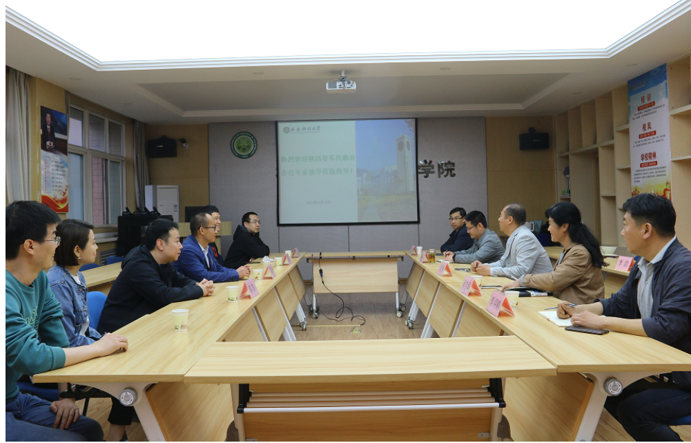 4月13日下午,陕西省军民融合办周文通一行来2026世界杯指定网站进行交流座谈,公司党委书记周涛、经理张涛、副书记杨宝华、副经理杨庆浩和部分教师参与了此次交流座谈。