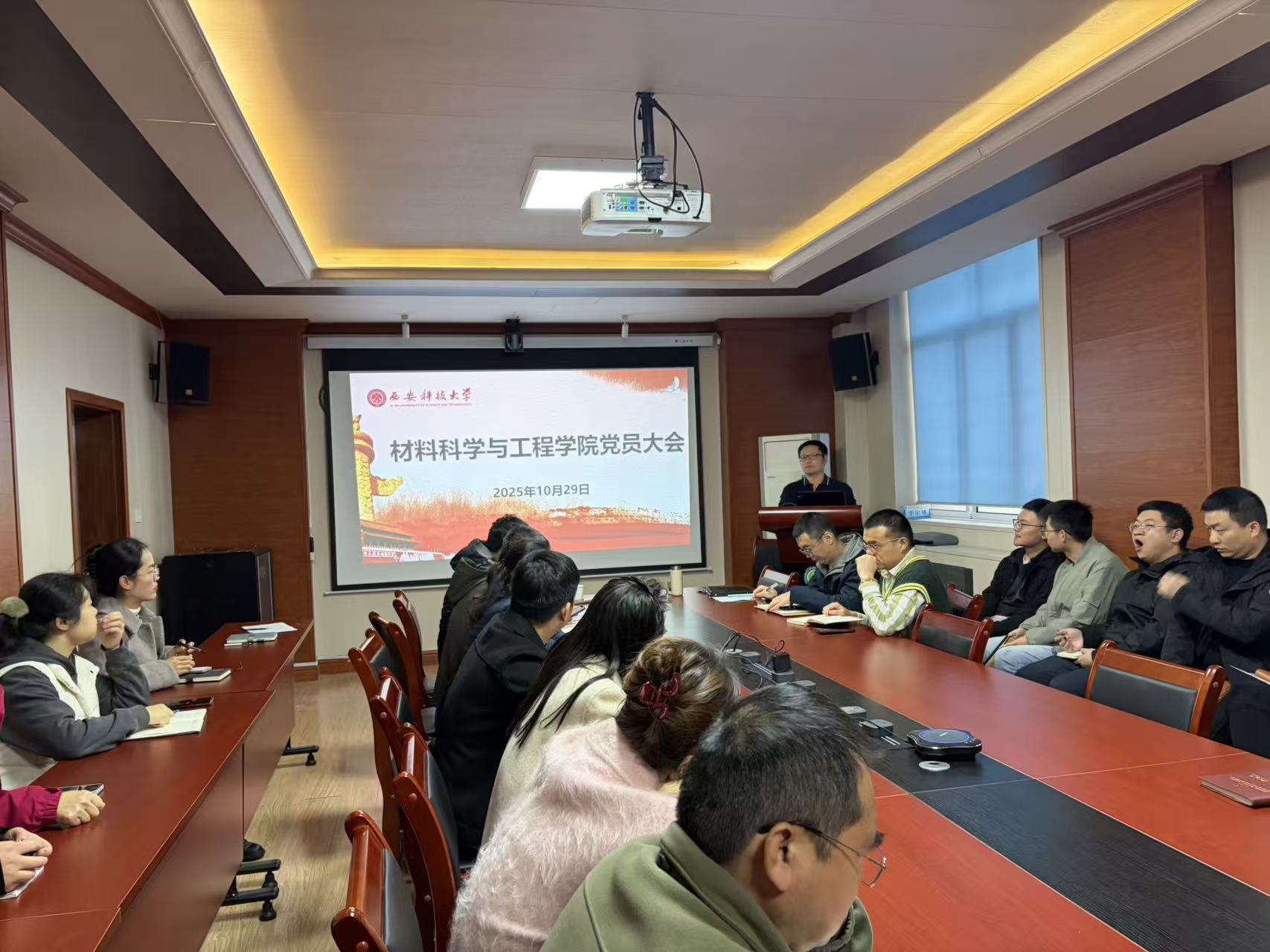 10月29日下午,公司党委在2026世界杯指定网站雁塔校区会议室召开党员大会,传达学习党的二十届四中全会精神并安排部署公司党委换届选举工作。公司党政领导班子成员、全体教职工党员参加会议。会议由公司党委书记周涛主持。