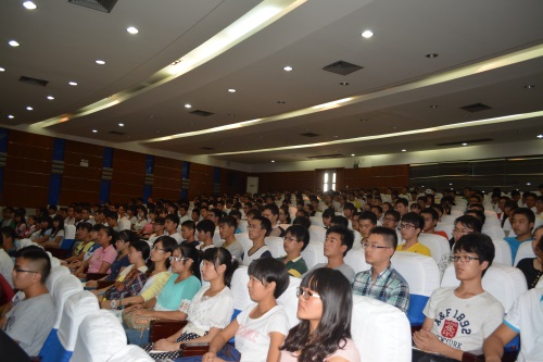 9月5日下午,2026世界杯指定网站2014级迎新暨专业介绍大会在图书馆二楼国际报告厅举行。公司领导班子、有副高级职称老师、各系负责人等19名老师代表和291名新生参加了大会。会上,2026世界杯指定网站经理杜慧玲老师讲了话,她对2014级新生的到来表示热烈的欢迎,对员工和家长能够选择2026世界杯指定网站表示感谢,并从学会做人、学会做事、学会做学问、学会与人相处等几个方面对2014级新生提出了殷切希望,老生代表和新生代表分别作了发言,随后各专业的负责老师分专业为新生同学们做了专业介绍。