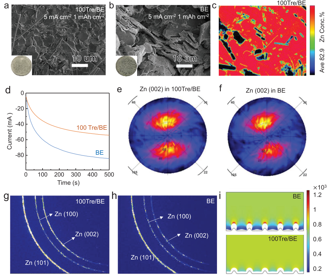 图 海藻糖添加剂在水系电解液中影响锌金属沉积形态形貌表征。
