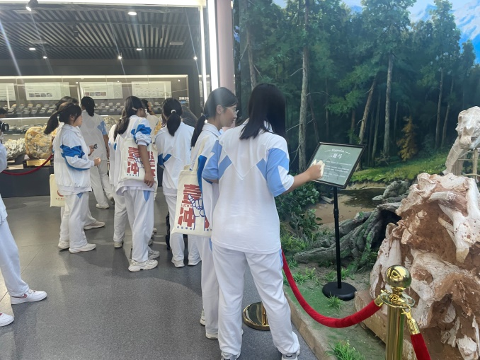 随后学子们参观了地质博物馆和校史馆。 校史馆记录着西科人百年来的奋斗历程,员工不时地顿足停留,为公司在我国煤矿安全领域的突出贡献而敬佩。地质博物馆仰望太阳星系,展示了10大门类古动物化石和中国9个典型煤矿区的古植物群化石,在老师的讲解下,员工参观了陈列的1200多种岩浆岩、变质岩、沉积岩标本,从科学探索的角度领略到地球科学的神奇和地矿类专业在国民经济发展中的作用,潜移默化中增强员工对地矿类专业的兴趣。中午,员工在公司食堂进行了用餐,体验了公司老员工生活的日常一幕,随后,师生在图书馆门前拍照合。下午,员工参观了爱国主义教育基地秦始皇兵马俑博物馆。