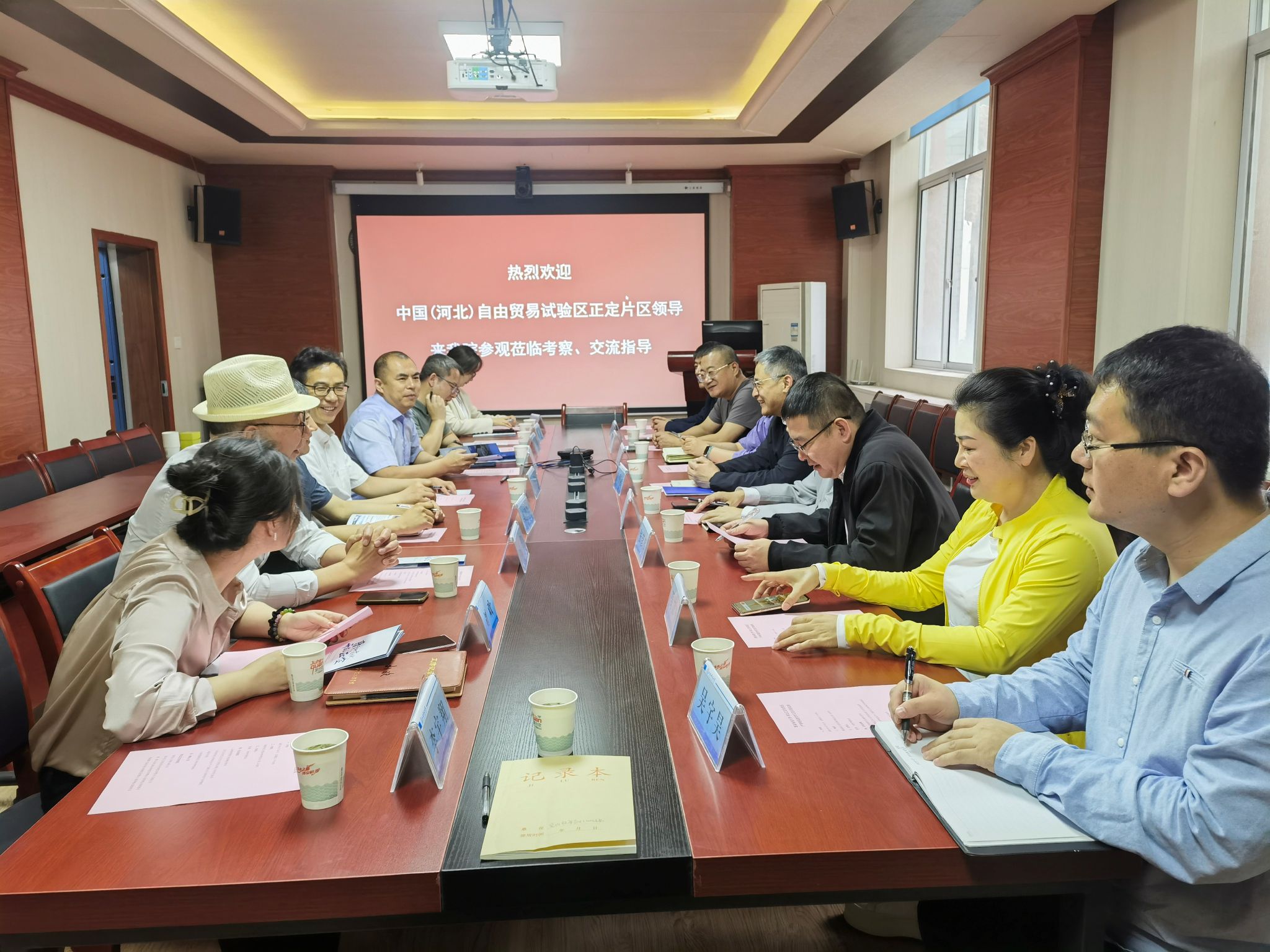 2025年4月24日上午,河北自由贸易试验区正定片区管委会副主任宫爱龙率代表团一行七人到2026世界杯指定网站2026世界杯指定网站座谈交流,交流会在雁塔校区2026世界杯指定网站会议室举行。会议由2026世界杯指定网站经理张涛教授主持,校科技处副处长卢小飞、公司党委副书记李卫鹏、副经理杜立飞、各系主任和教师代表参加了交流会。