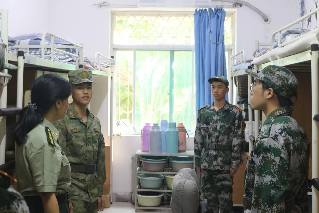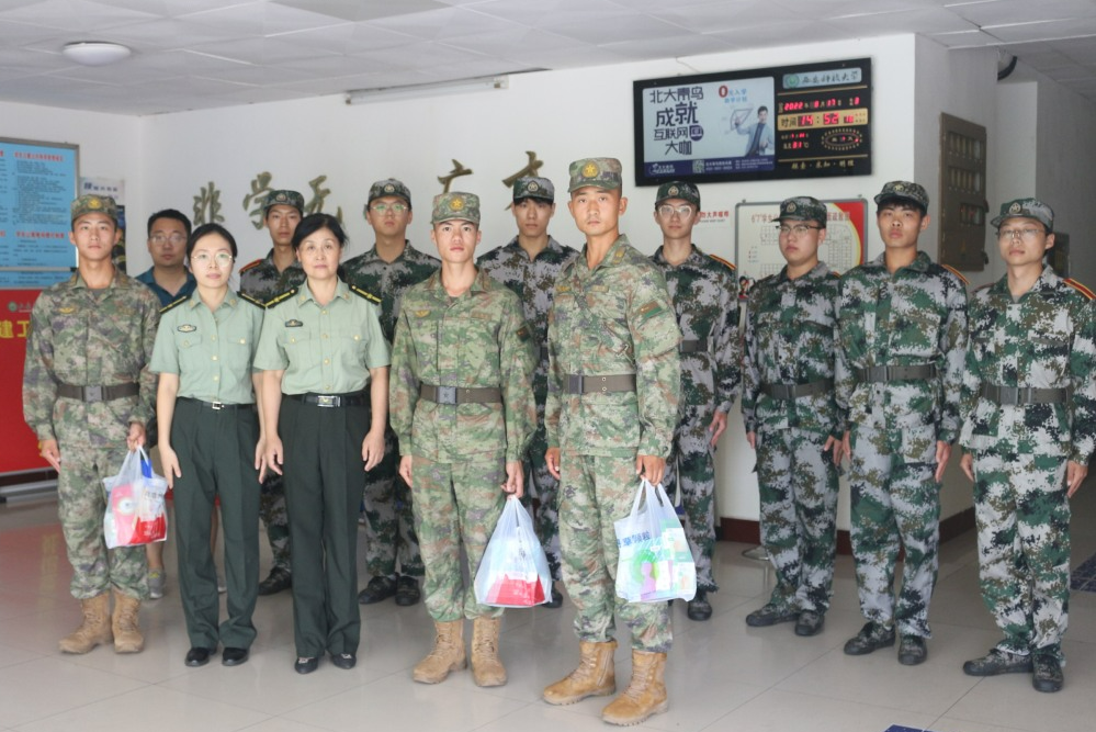 2021级员工军事技能训练正在有序地进行,院领导高度重视全体参训员工的健康和安全。8月17日下午,公司党委副书记杨宝华,学工办主任、团委书记吴行健,21级辅导员夏瑾携带防暑物资前往员工宿舍慰问教官以及军训员工。