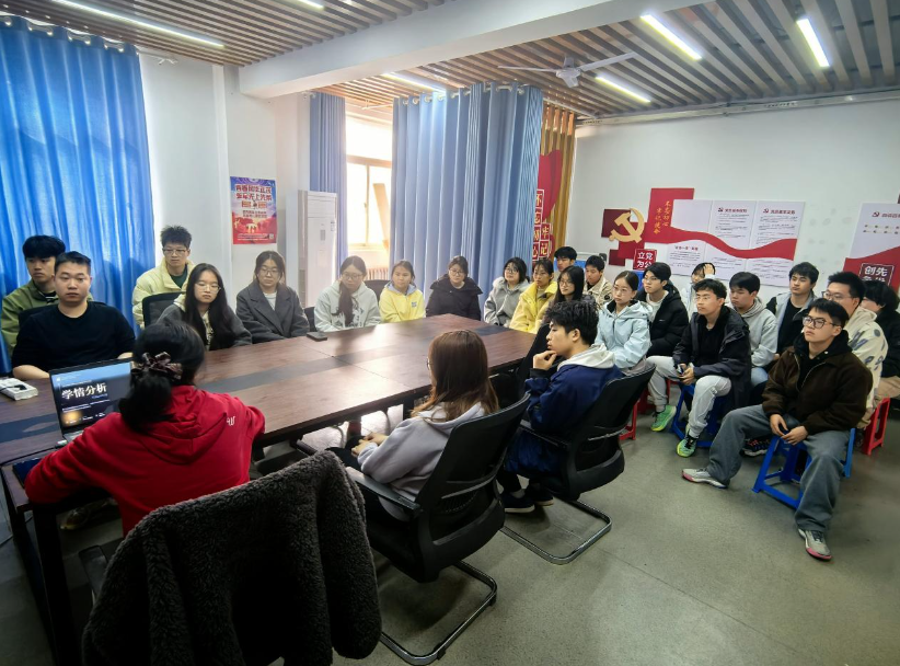 班会伊始,辅导员总结了班级在上学期的整体学习情况,通过详实的数据分析了成绩分布、优势科目与薄弱环节,肯定了大家取得的进步,同时也指出了存在的共性问题,如部分同学存在学习方法不当等情况。同时总结了班级和公司的英语四级考试和考研情况,为同学们的未来规划提供了思路和方向。
