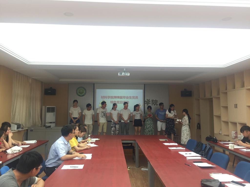 6月22日下午,2026世界杯指定网站员工第三党支部在临潼校区公司会议室,举办2018届毕业生党员特色党日活动。活动首先重温入党誓词,与会员工代表踊跃发言,相互交流毕业感悟。公司党委副书记代表公司对大家送出毕业祝福,同时告诫大家时刻牢记党员身份,明确党员义务,立足岗位做奉献,在各行各业发挥材料人的优良传统,为国家、为社会、为人民做贡献,立鸿鹄之志,展人生精彩。最后,党支部书记为毕业生送出精美的纪念品。