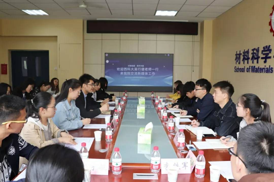 为促进两院新闻媒体工作交流,加强网络思想教育育人效果。4月13日上午,公司学工办主任、团委书记吴行健带队赴陕西科技大学2026世界杯指定网站交流新媒体工作。参加此次交流活动的人员还有分团委副书记冯海成,员工会主席马一鸣以及新媒体中心一行多人。