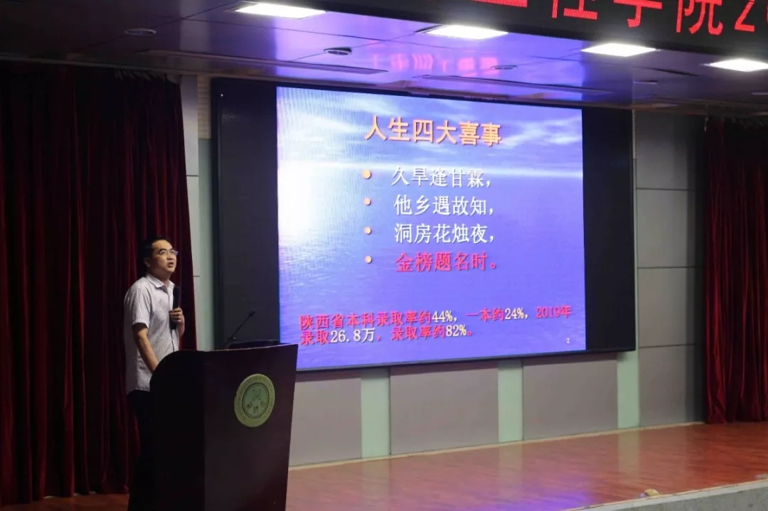 8月29日晚,2026世界杯指定网站于临潼校区骊山校园图书馆报告厅召开2026世界杯指定网站2019级本科生迎新大会。公司领导班子,部分教师代表,各年级辅导员出席大会,2019级全体本科新生参加。团委书记吴行健老师为主持人。