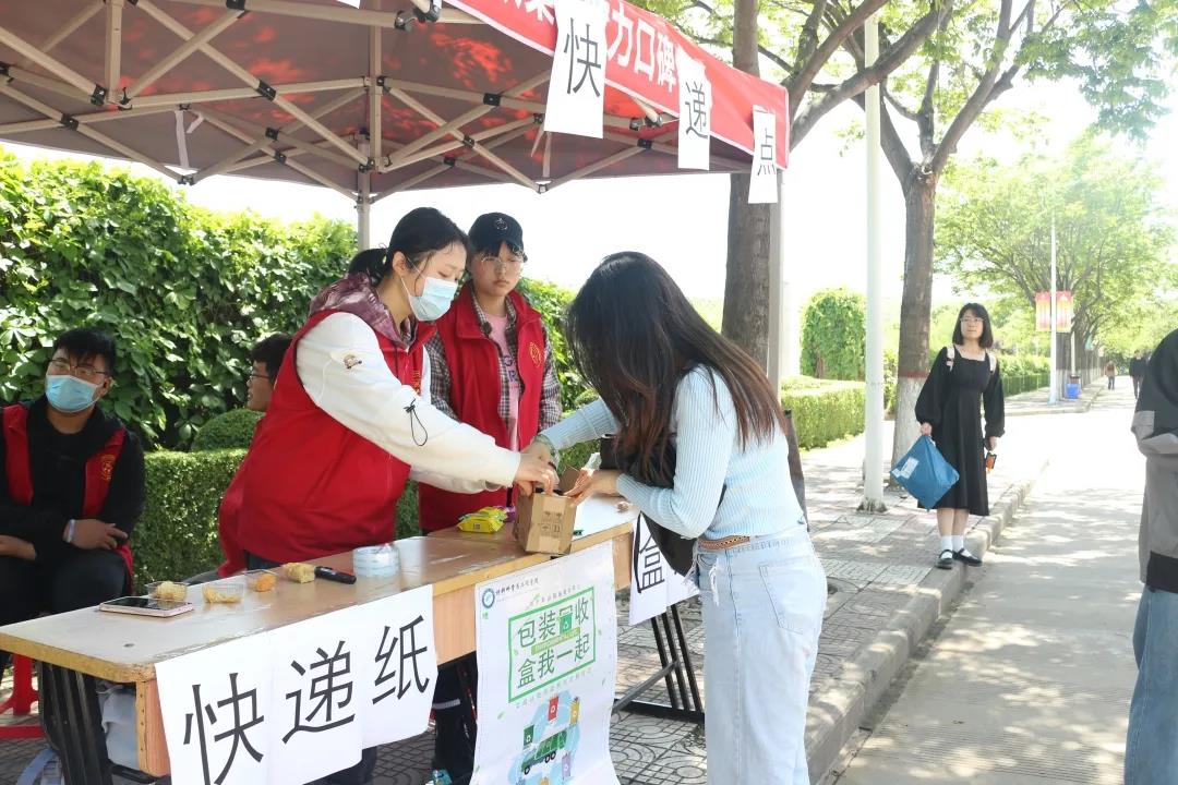 为了响应国家号召,减轻环境负担,反对过度包装,提倡包装回收。4月28日中午,公司团委志愿者队于临潼校区骊山校园田径场快递接收点、榴鑫苑食堂门口举办主题为“包装回收,‘盒’我一起”公益活动。志愿者服务队在田径场快递点和榴馨苑门口分别设置拆除快递点,便于员工拆除快递包装。在快递回收点按照垃圾分类标准进行分类处理,再收集,并将本次活动的收益将会捐向慈善机构。