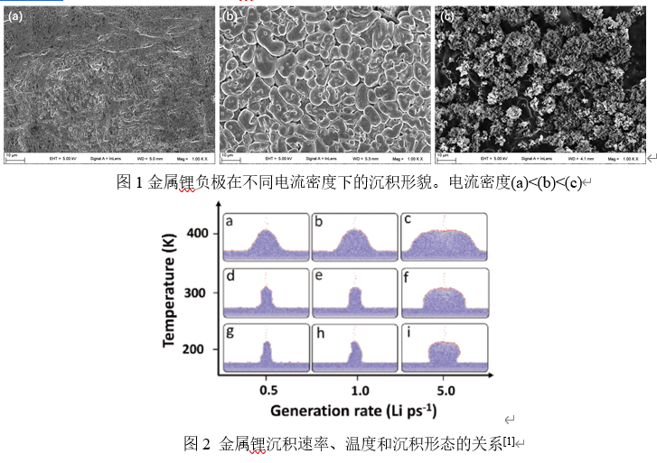 本案例以金属锂负极为研究对象,主要内容是系统分析金属锂在锂离子电池过程中的溶解/沉积过程,要求员工结合着两章内容,分析讨论金属锂应用的一系列问题,如SEI膜的形成和破裂,枝晶生长与粉化等问题,帮助员工消化巩固金属阳极过程和阴极过程这两章知识的能力,锻炼员工综合运用所学知识分析电池前沿问题的能力。本案例采用金属锂对称电池,电解液采用醚基电解液,讨论电流密度对于金属锂沉积形态的影响。主要结果如图1~2所示: