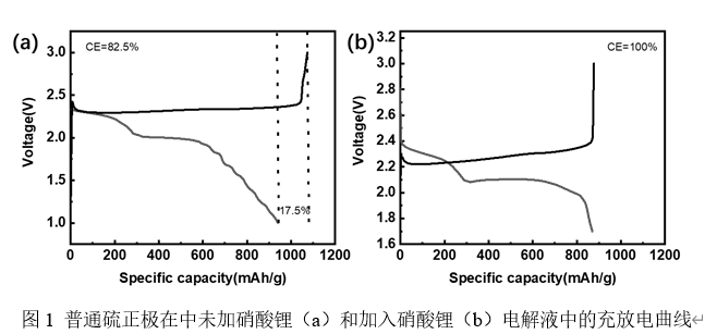锂硫电池的硫电极在放电时会生成高阶的多硫化锂,大量溶解于电解液,是典型固—液—固反应路径。多硫化锂溶解于电解液后,会产生所谓“穿梭效应”,严重降低锂硫电池的库伦效率,甚至在小电流下电池无法正常充电。所谓穿梭效应,指的是充电时,在正极侧氧化形成的高阶多硫离子又扩散到负极被还原为低阶多硫离子,低阶多硫离子又扩散到正极被氧化。这样中间态氧化物质在正负极之间穿梭循环,相当于发生内部微短路,充入的电能有一部分不断转换为内能,严重时可导致电池始终无法完成充电第二阶段的液-固转化。